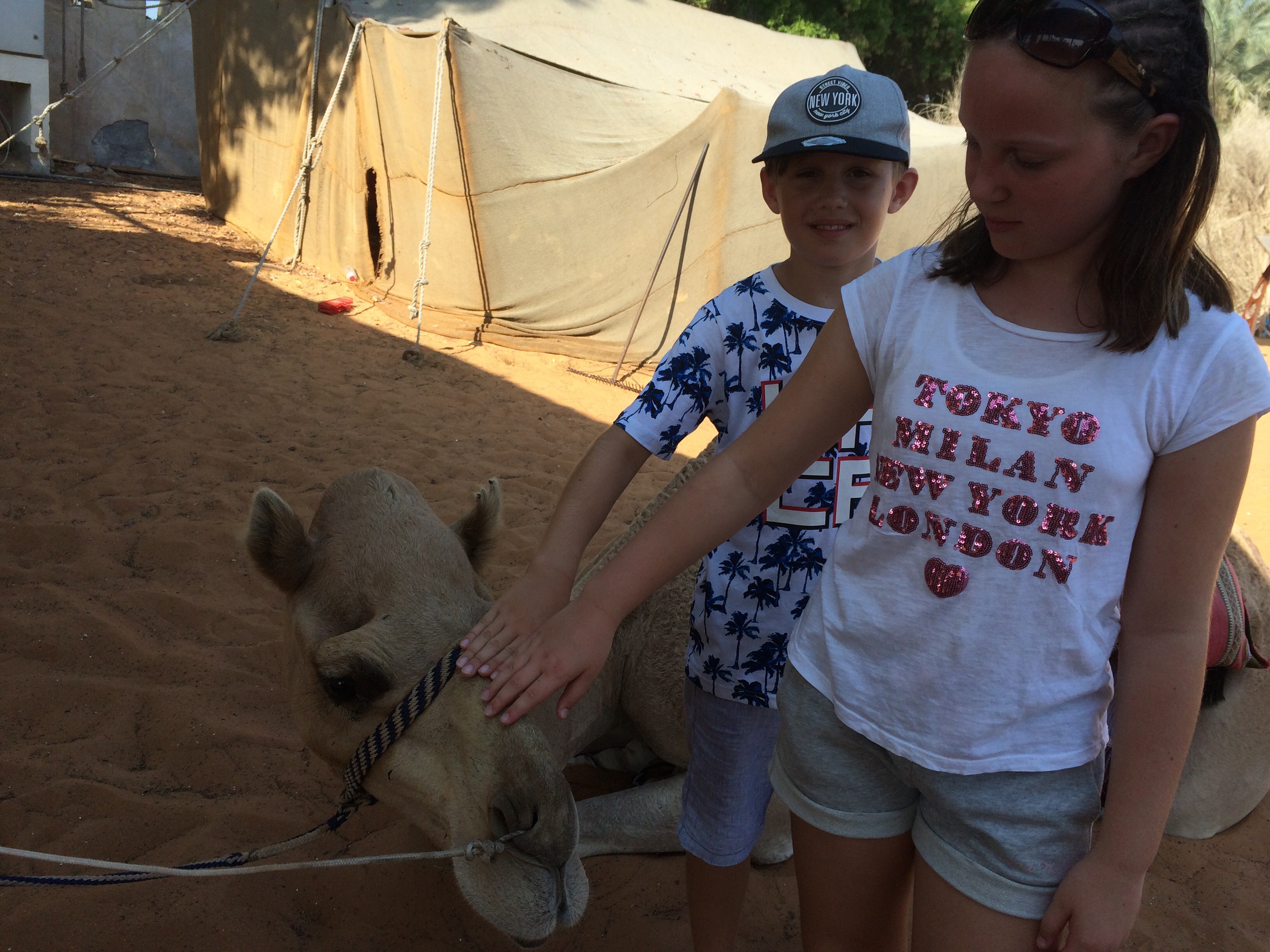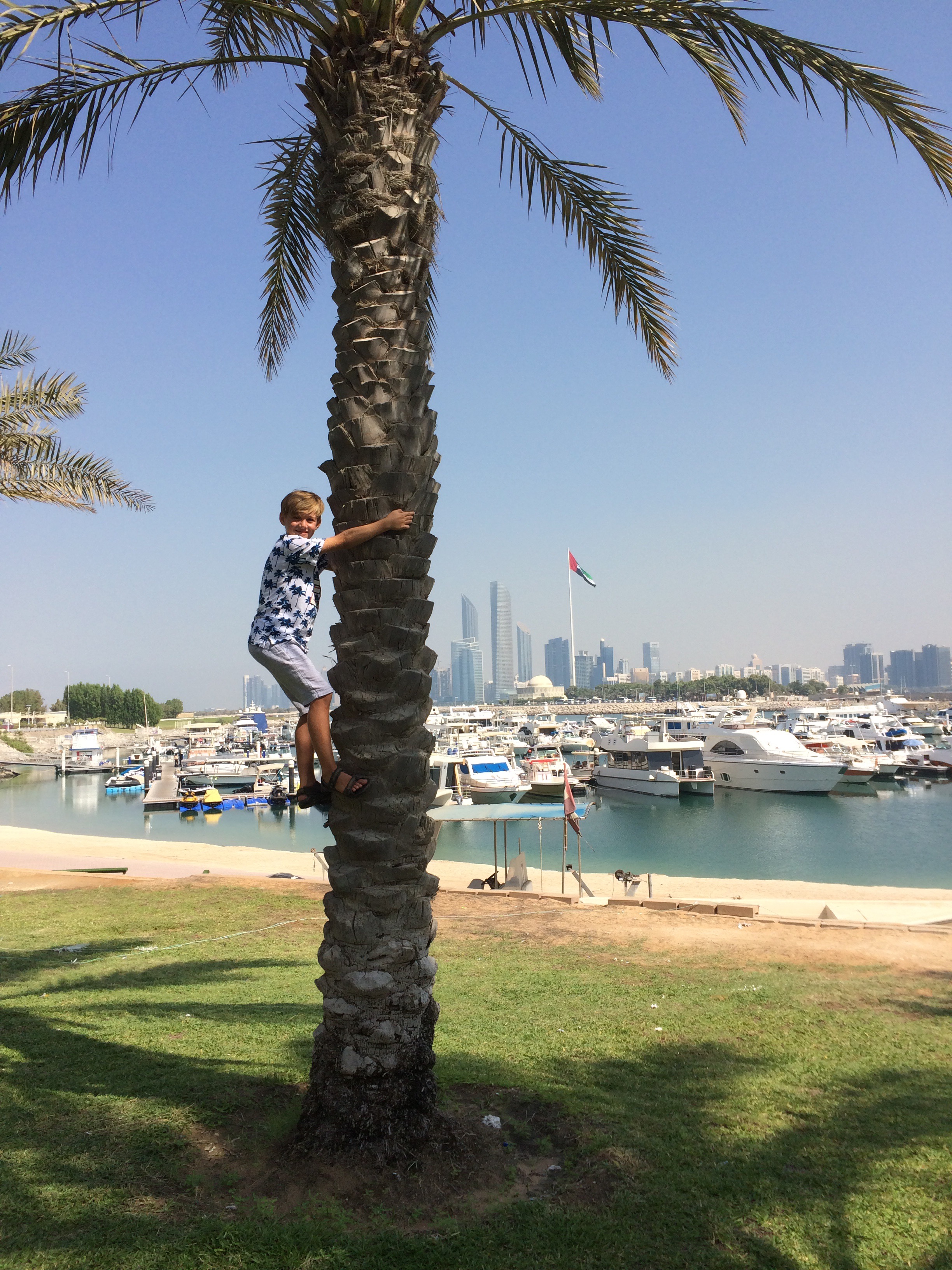 När Tuva och Vilmer var fyra och fem år tillbringade vi en månad i Förenade Arab Emiraten. Vi bilade runt och besökte även Oman och Qatar. Därför kändes det väldigt bekant när vi landade i Abu Dhabi igår kväll. De vita arabiska byggnaderna, de palmkantade motorvägarna, de glasförsedda skyskraporna, ljusdekorationerna och hettan. Kontrasten mot Tanzania är total. Här är allt välordnat, organiserat, rent och toppmodernt. En riktig liten pärla men en mycket het sådan. Temperaturen har idag legat på 38 grader i skuggan.