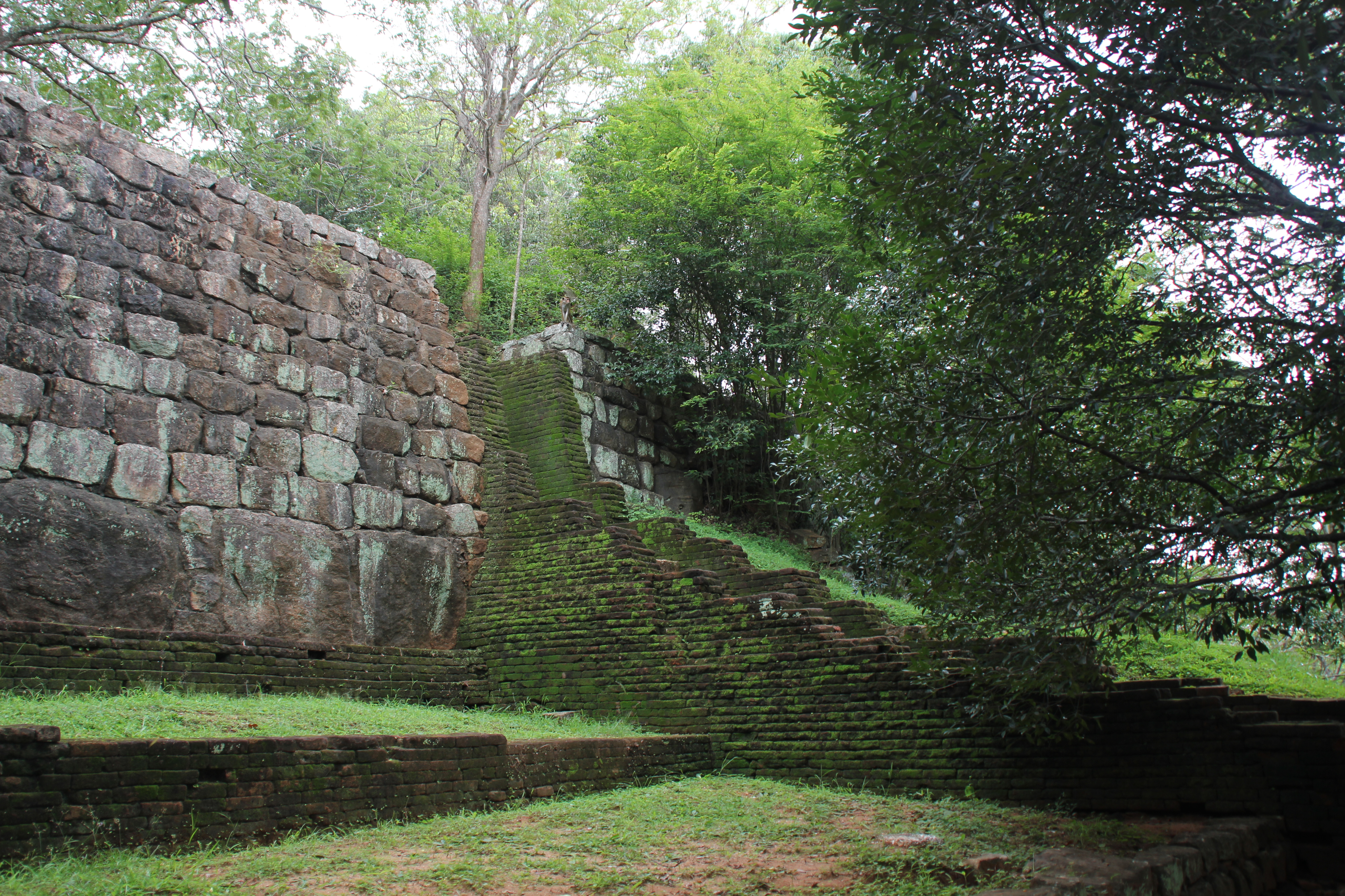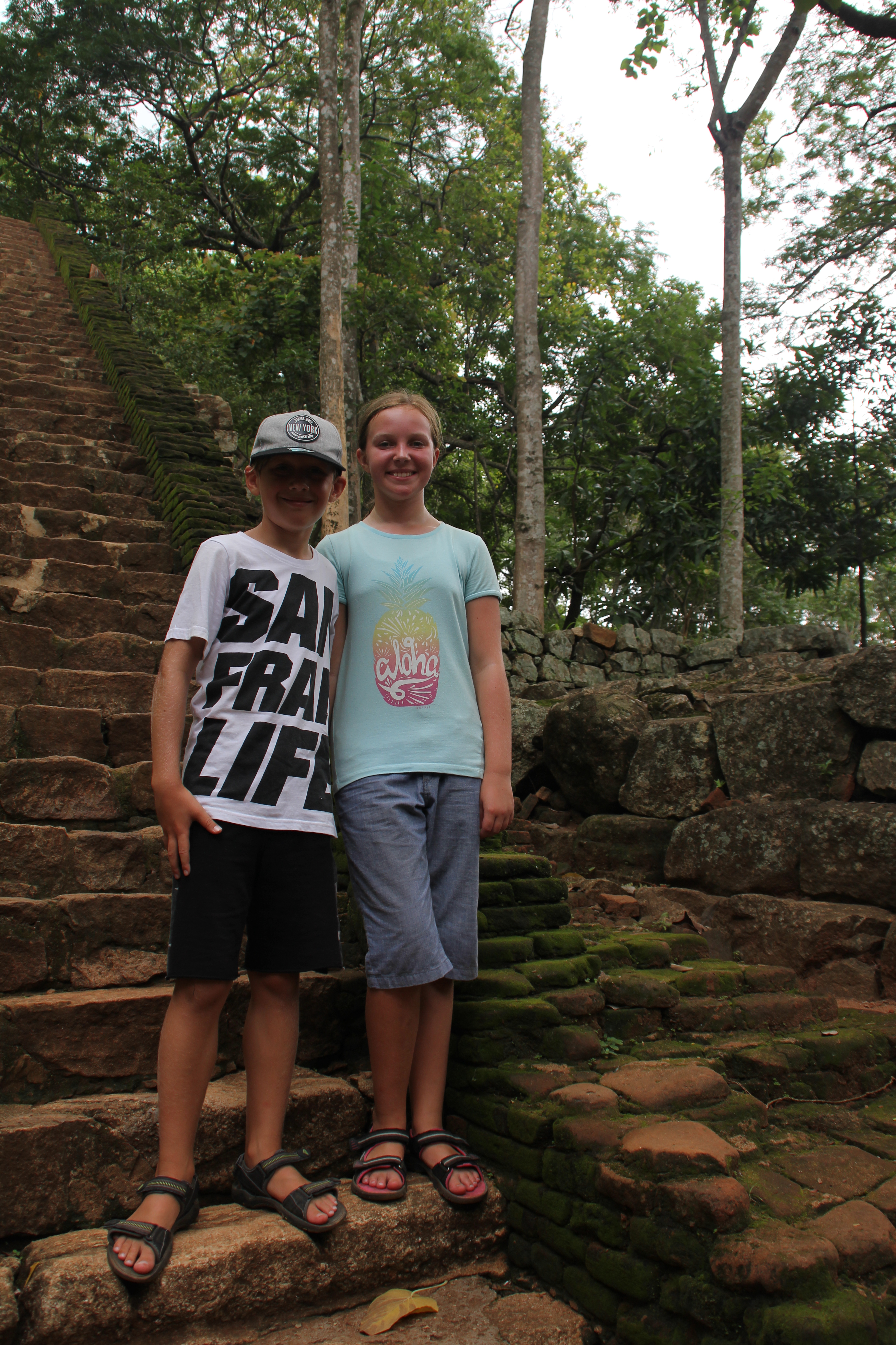Färden gick till Sigiriya och Lion Rock. Lion Rock är en hög klippa mitt ute i ingenstans där en tokig kung byggde ett palats på bergets topp på 500-talet. För att bli kung murade han in sin egen pappa, den tidigare kungen, i en vägg varvid hans bror som borde ha efterträtt fadern flydde landet. Av rädsla för hämnd byggde den girige kungen sedan sitt palats på toppen av berget. Brodern återvände efter ett tag och tog tillbaka makten och palatset blev istället ett munkkloster och det var det fram till 1500-talet. Efter det föll det i glömska fram till det ”upptäcktes” av en vit medelålders man (ni vet väl att det bara är vita medelålders män som upptäcker länder, floder, djur och växter…?). Hur som helst så är det en fantastiskt plats att strosa omkring på. Det känns som att befinna sig i Indian Jones värld eller möjligtvis Tintins med tanke på berättelsen om galna kungar och hämnd. Efter strosandet kan den som önskar klättra upp på berget. Det är nätta 1300 trappsteg upp. Först är det stentrappor men sedan när det blir brantare ersätts dessa av hiskliga stålkonstruktioner som sick-sackar sig uppför bergsväggen. Ganska läskigt medan man klättrar men härligt när man kommit upp på toppen och ser resterna av det gamla palatset och utsikten. Ännu härligare är det när man kommit ned igen och på darriga ben kan konstatera att man inte behöver göra om det.