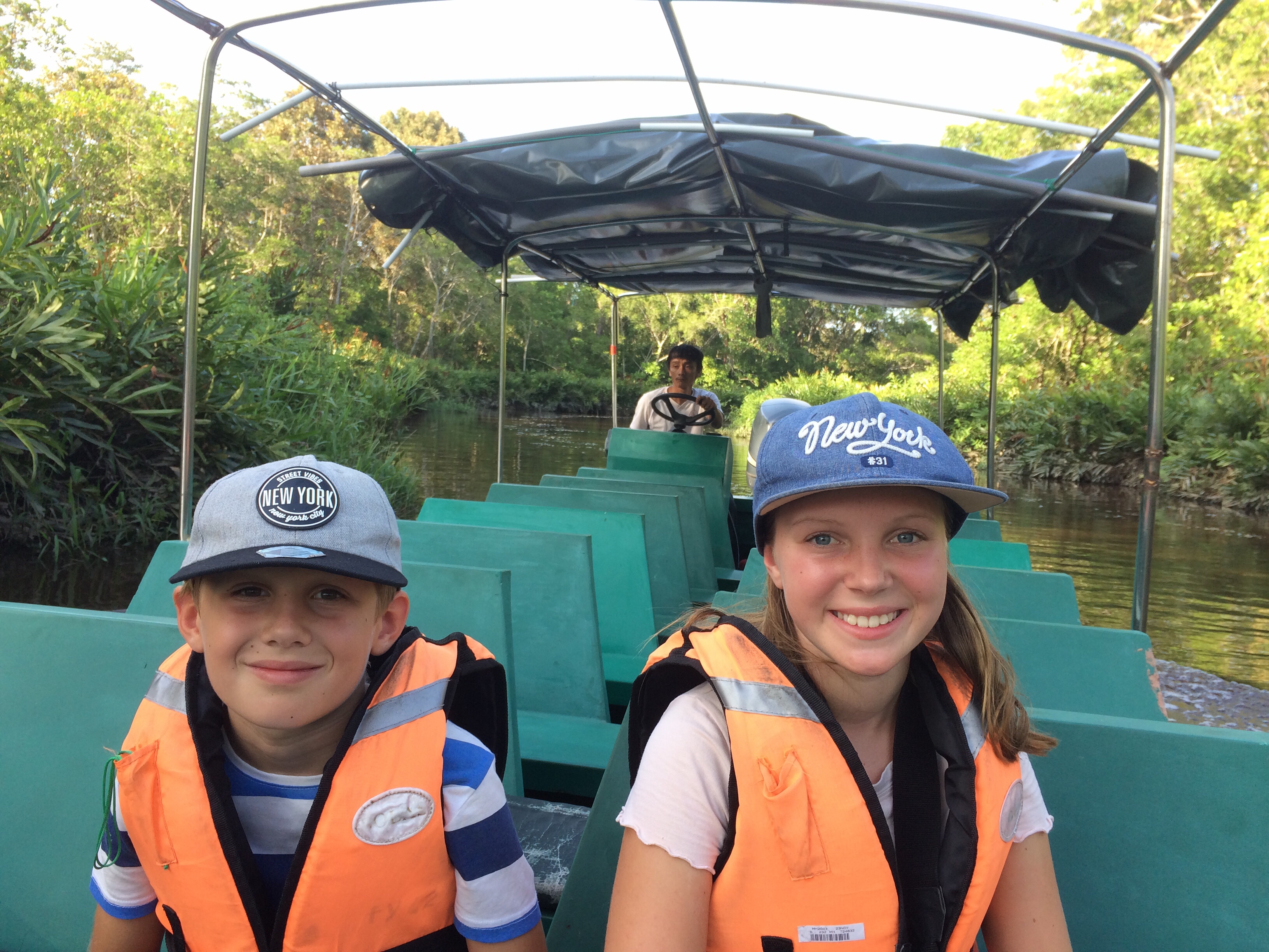 Därefter tog vi en minibuss två och en halv timme till Klias River. Vi var så ivriga när vi kom fram att vi genast gav oss ut på en flodtur. Vilken lycka att se näsapor svinga sig mellan träden! Så snart mörkret fallit åkte vi ut på ytterligare en tur på floden. Det var alldeles svart, tyst och stjärnklart och vi såg hela träd som blinkade som julgranar av eldflugor i tusental. Helt magiskt!