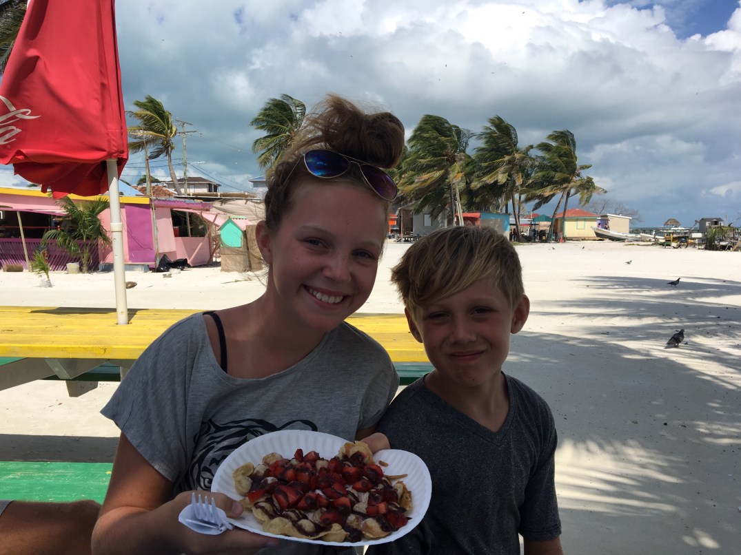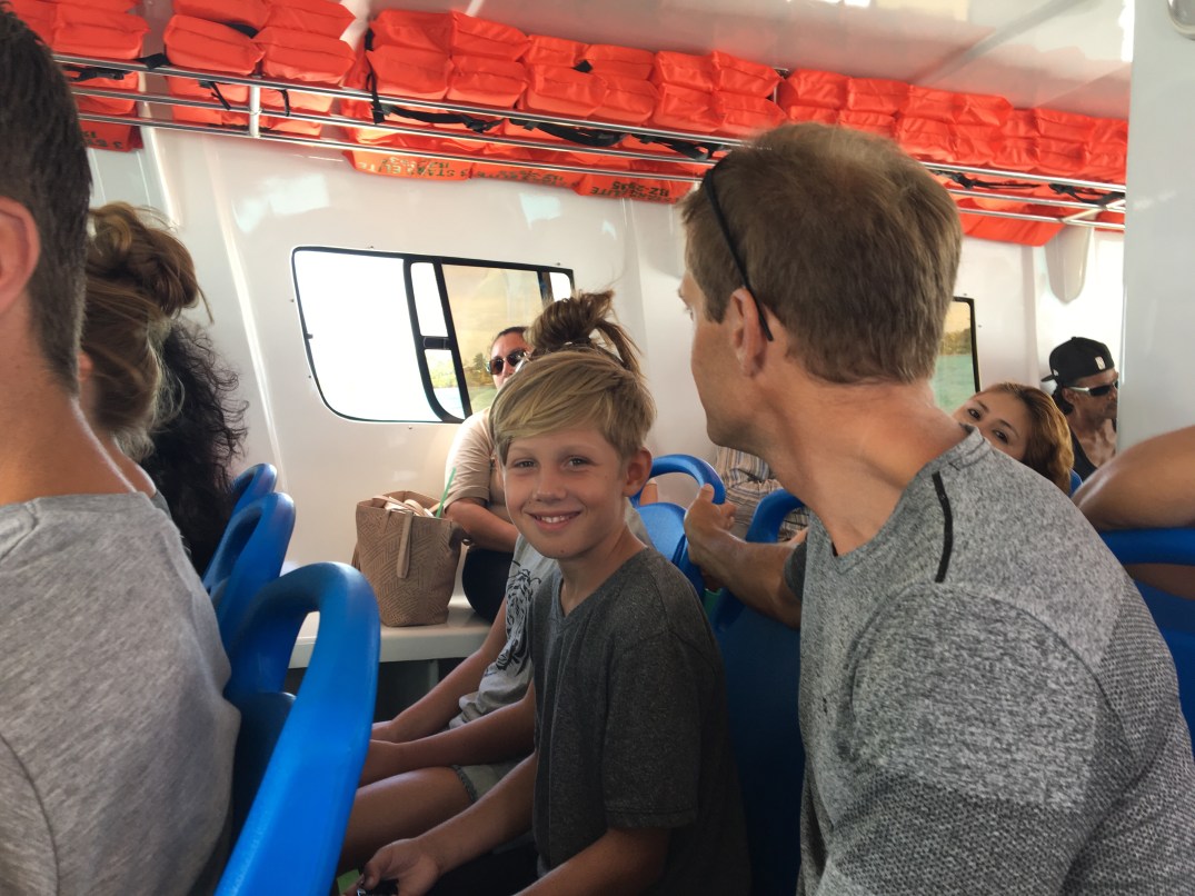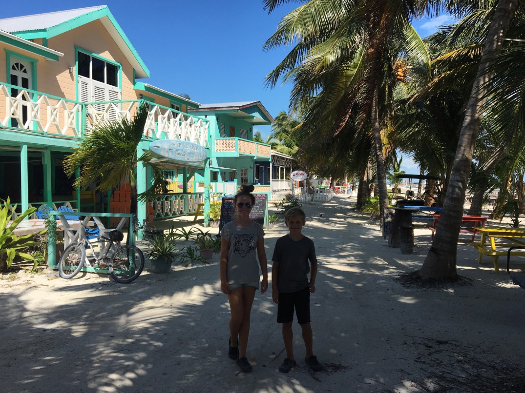 Färjan över till San Pedro på ön Ambergris Caye (eller Isla Bonita som den är mer känd som) tog 90 minuter och gick över förväntan. Vi hade läst mardrömsrecensioner om båtarna och tullpersonalen men allt gick hur smidigt som helst. Barnen tyckte att det var coolt när militärer med knarkhundar gick igenom båten och allt bagage.