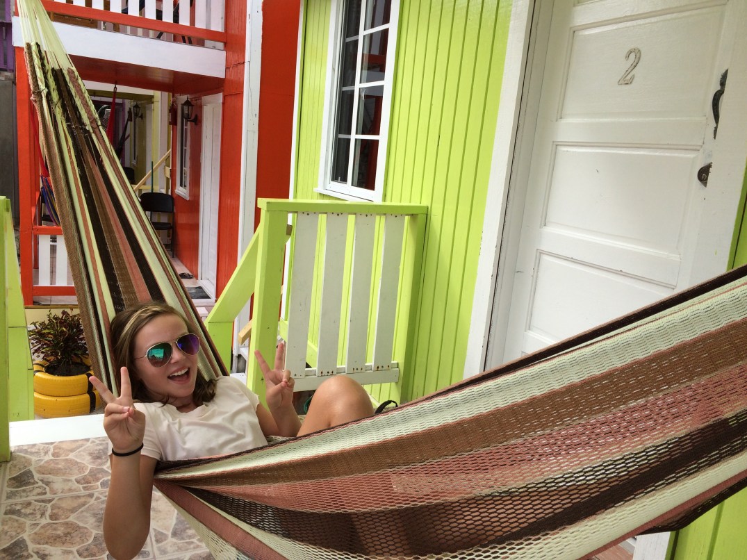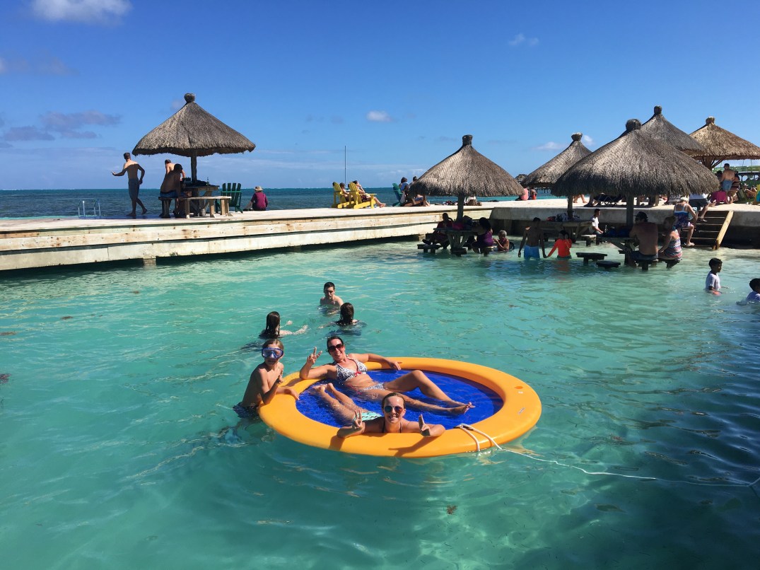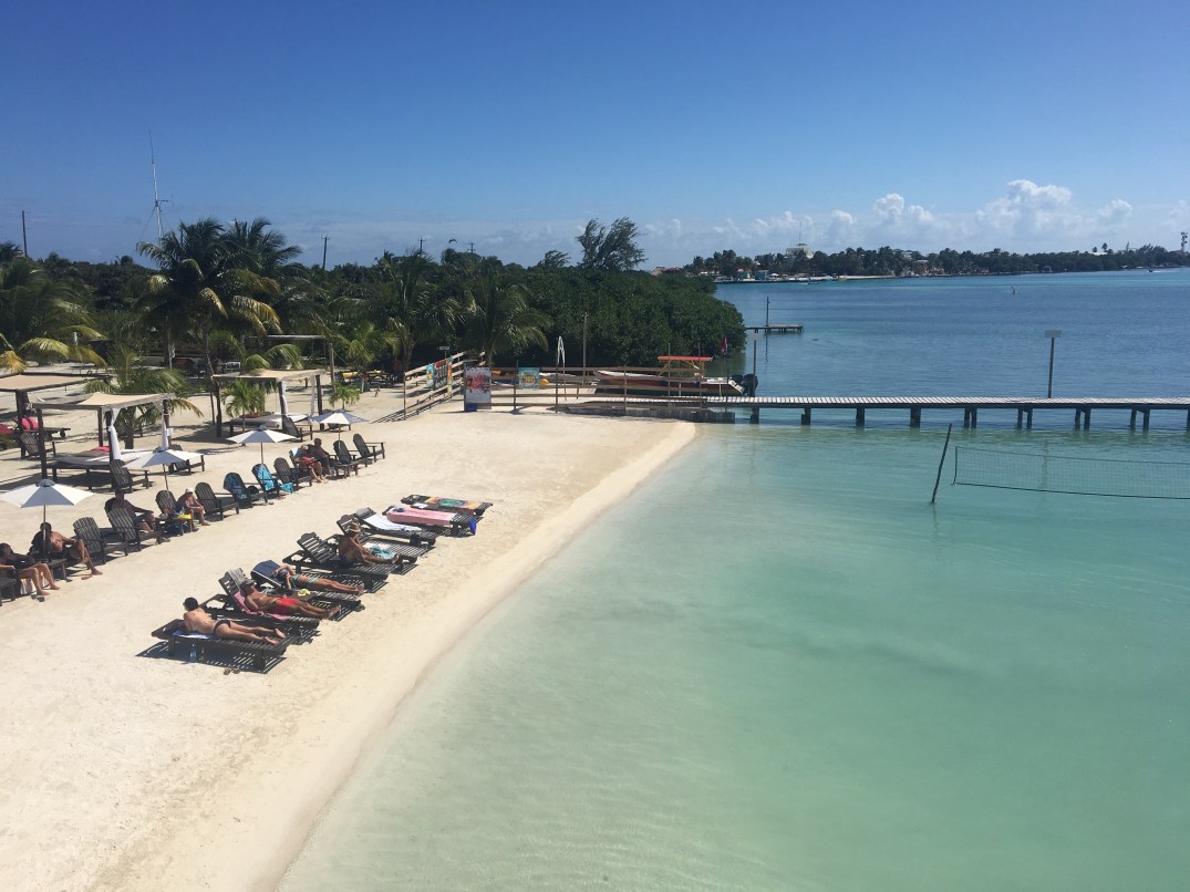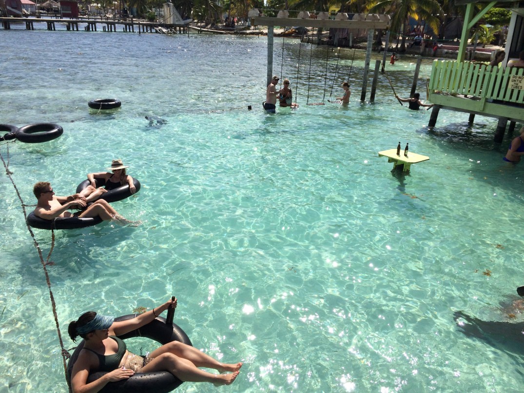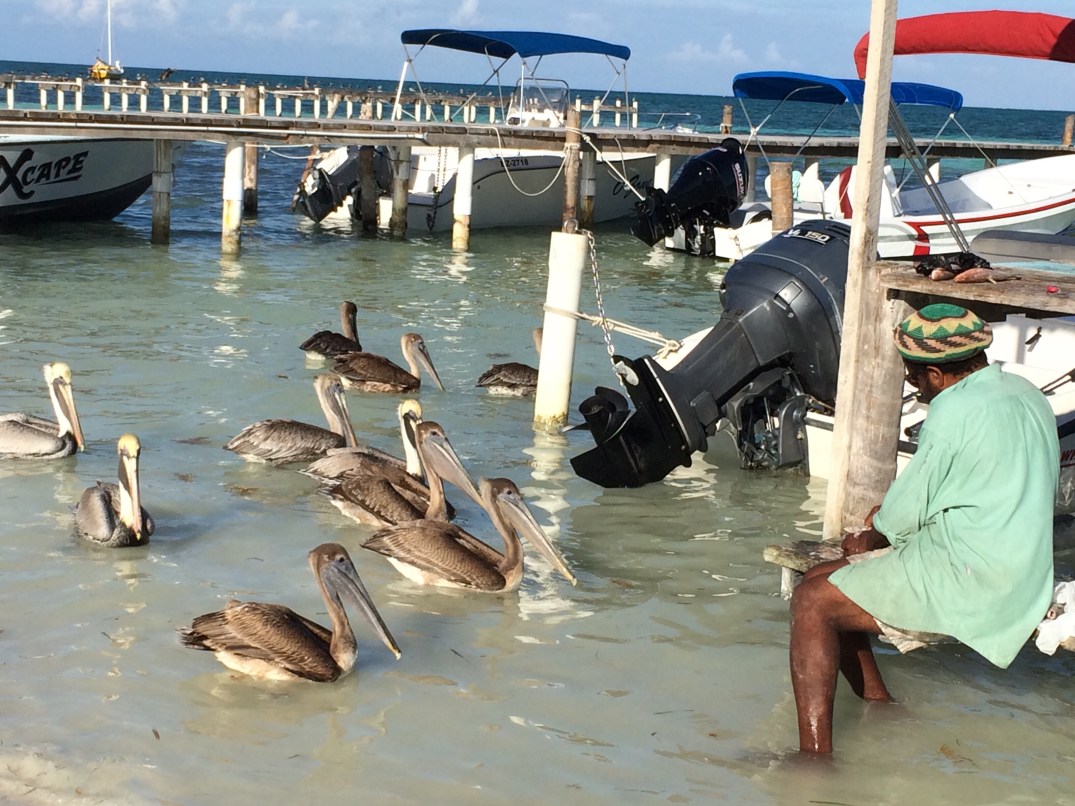 Från San Pedro tog vi färja 30 minuter till ön Caye Caulker som är en liten bilfri ö med karibisk känsla. Där spelas reagge överallt och rastafarikulturen genomsyrar vardagslivet på ön. ”Go slow” är mottot på ön. På Caye Caulker kände vi oss genast hemma och så fort solen kom fram njöt vi av det turkosblå vattnet och värmen. Öarna utanför Belize är atollöar som huvudsakligen består av mangrove så det är ont om stränder men vad gör det när vattnet är härligt varmt och klart. Från bryggorna har vi sett massor av coola fiskar och till och med en saltvattenskrokodil.