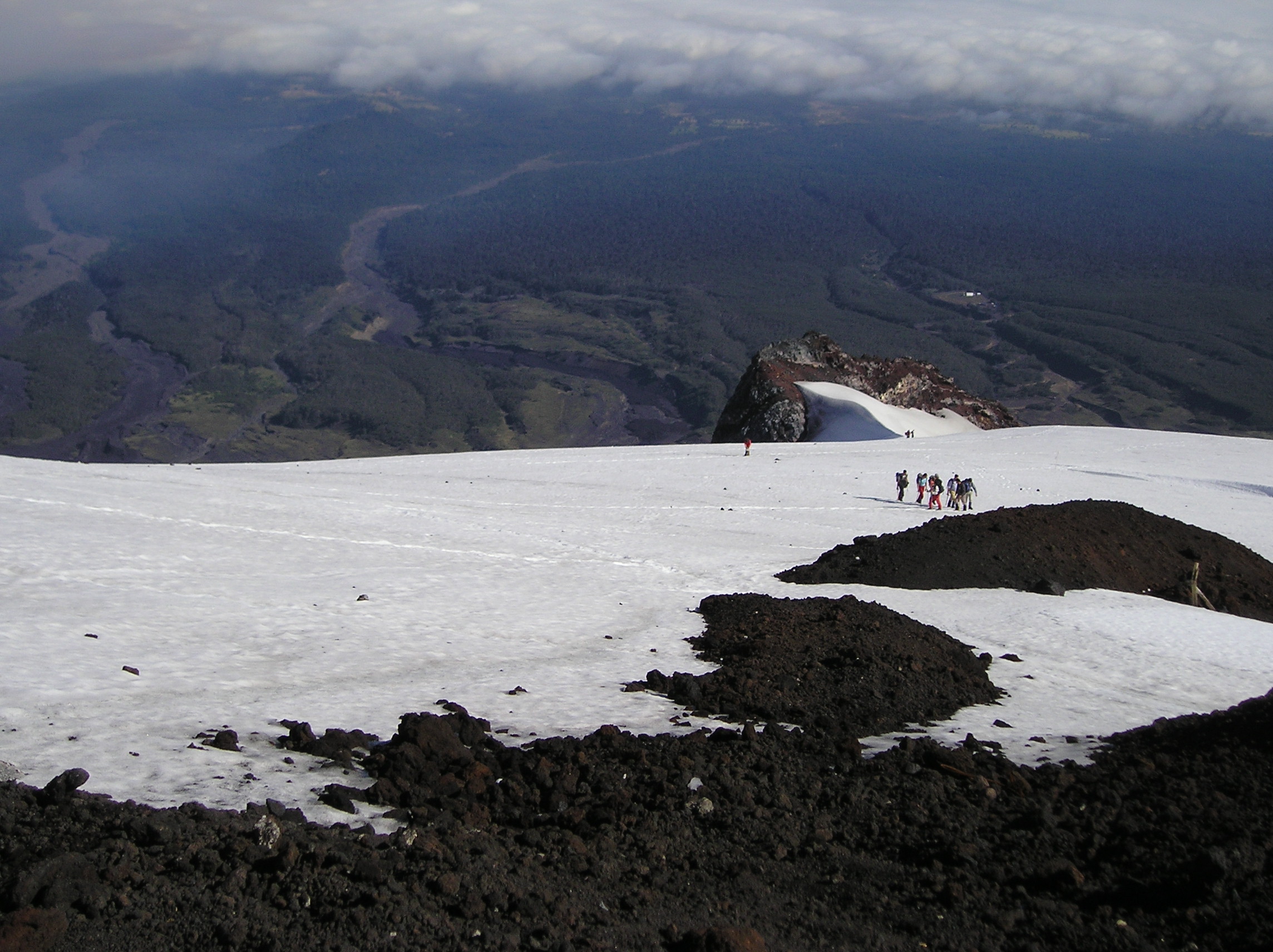 En plats som både Stefan och jag verkligen uppskattade på vår förra resa i Sydamerika 2004 var staden Villarrica i Chile. Den lilla sömniga staden omges av ett sagolikt vackert landskap med svarta vulkansjöar och snötäckta vulkantoppar. Vi beslutade oss för att bestiga Volcán Villarrica som sträcker sig 2827 meter över havet. Kämpigt upp men det gick snabbt nedför då vi åkte kana på snön!