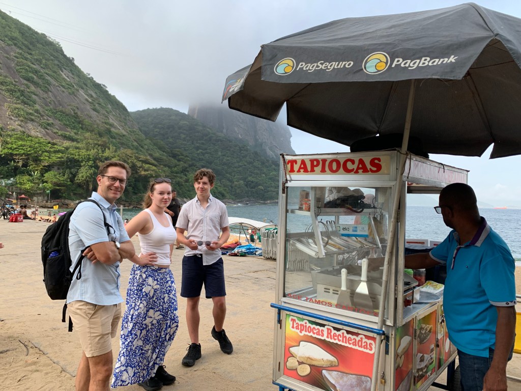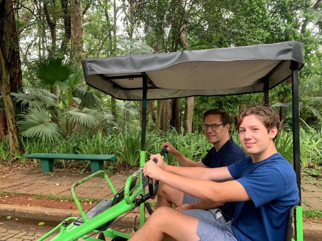 Hur kommunicerar ni? Trots att de allra flesta i Brasilien har läst engelska i skolan så är det ytterst få som faktiskt talar/förstår engelska. Däremot så finns det likheter mellan portugisiska och spanska så oftast får vi kommunicera på vår knaggliga spanska och det fungerar hyfsat. Att läsa portugisiska går rätt bra men att förstå när de talar är nästan omöjligt. Eller som Vilmer uttryckte det: ”De har lite svårt med uttalet här…” Uttalet skiljer sig mycket från spanskan. Vi har laddat ner en översättningsapp som hjälper oss att kommunicera också. Den har varit guld värd! Vi har också märkt att kroppsspråket skiljer sig åt mellan våra kulturer. Gesten vi gör hemma för att visa att någon ska knipa mun/vara tyst betyder här att något är gott. Det var en aning förvirrande innan vi listade ut det!