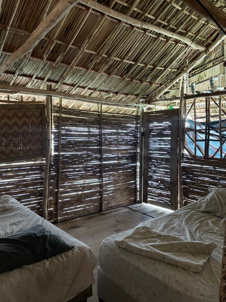 Vi korsade landet med terrängbil eftersom kuna-folket har bestämt att endast fyrhjulsdrivna bilar får köra i området då vägarna är mycket branta och krokiga genom bergen och regnskogen. I hamnen väntade vår guides pappa, Antilio, på oss och körde oss till Devil’s Island där vi skulle tillbringa våra första två nätter. Ön är liten och det går att gå runt den på 20 minuter. Det finns en kritvit strand och turkost varmt vatten att bada i MEN bakom de perfekta solbilderna finns också en annan sida.