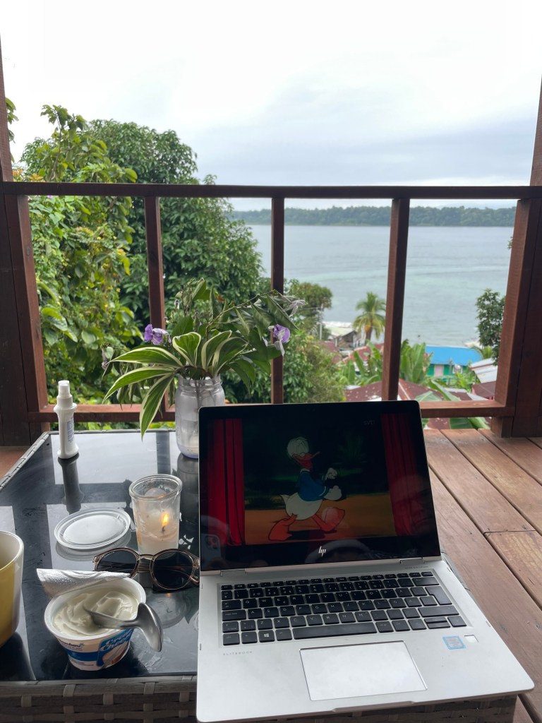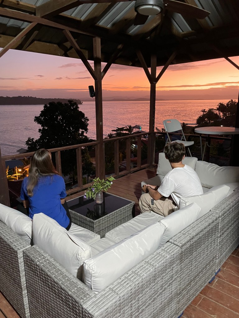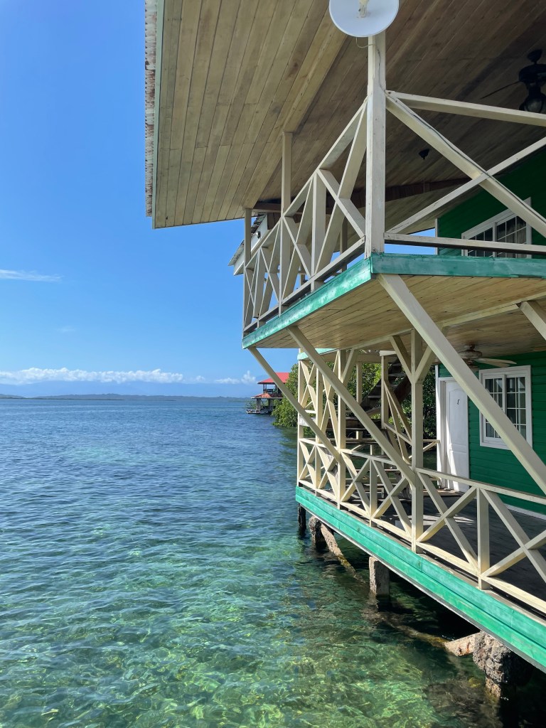 Från Panama City tog vi sedan nattbussen på 13 timmar för att för tredje gången korsa landet till området Bocas del Toro. Efter bussen väntade en taxiresa samt två båtresor innan vi äntligen var framme på vår ö Bastimentos. På håll såg vi ett vackert trähus som låg högst upp på kullen inbäddat i regnskogen och till vår stora lycka var det just det huset som vi hade hyrt för de kommande fem nätterna. Vi tillbringade många härliga timmar på verandan beundrandes utsikten!