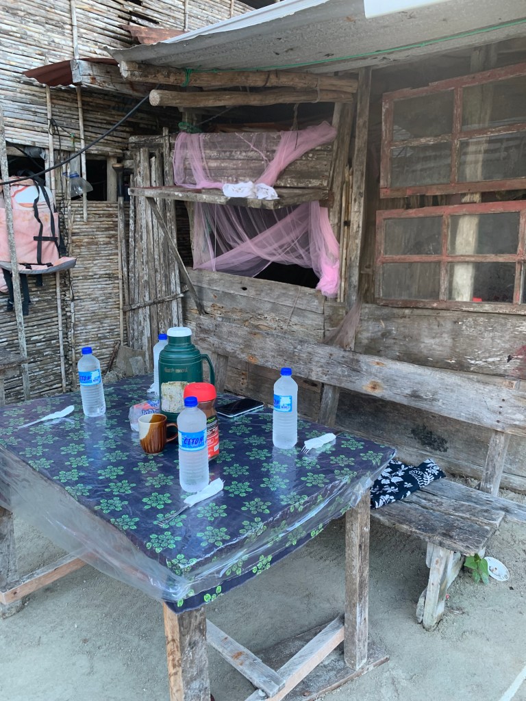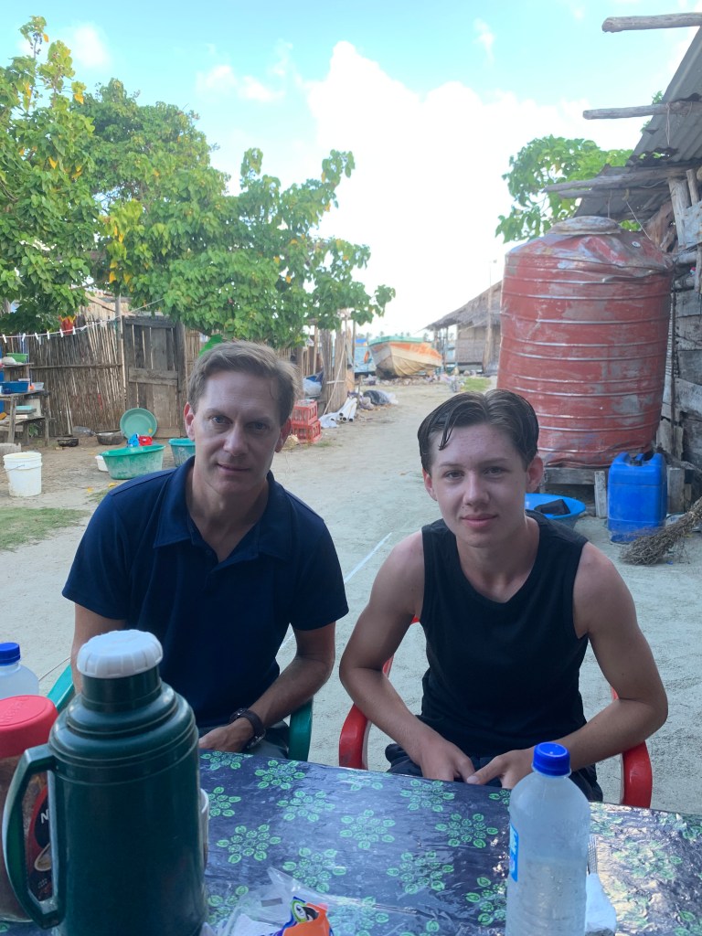 Den tredje dagen dök äntligen vår guide upp. Det visade sig att hans svärmor dött två dagar tidigare och att han hade haft mycket att fixa med i och med detta. Han meddelade att vi de två kommande nätterna skulle få bo i hans pappas hus på ön Wichub Wala och att det där fanns både toalett och dusch! Trodde vi, ja… Det fanns i alla fall en hink med sötvatten och en skopa. Bättre än ingenting!