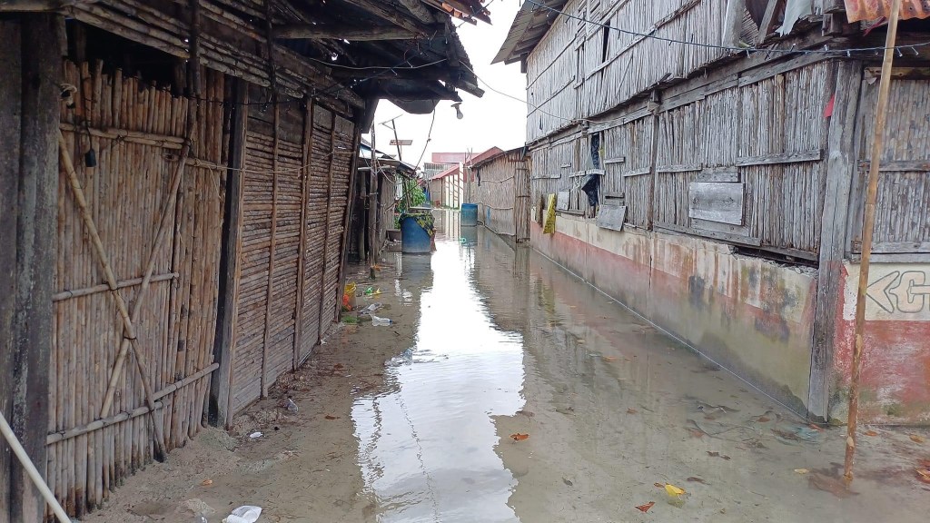 (Stormen fortsatte tydligen efter att vi lämnat öarna och vår guide skickade foton på att ön numera ligger 20 centimeter under vattennivån. Vattnet har letat sig in i alla hus och ställer till stora problem.)