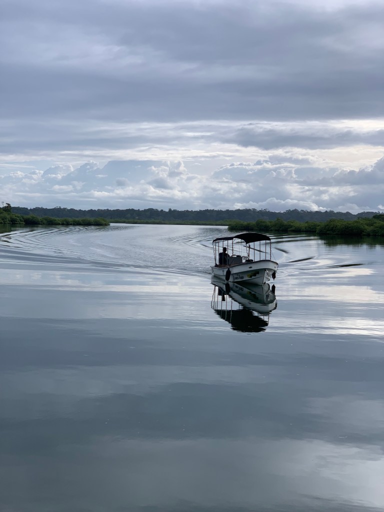 På andra sidan vägen var det en pir och där stod det folk och väntade vilket var ett bra tecken. Vi frågade om det gick någon båt till Puerta Jimenez (gränsstaden in till Corcovado National Park) och de sa att de hoppades det men ingen visste exakt när och hur man köpte biljetter. Hur som helst så kom det till slut en båt som körde oss över bukten till vår nästa destination. Eftersom vi inte hade bokat något boende så letade vi upp en restaurang som hade wifi så att vi kunde boka ett boende online. Därefter gick vi till vårt vandrarhem. Äntligen var vi framme efter tre långa krångliga resdagar! Vi har nu förstått att det är lika svårt att förflytta sig här i Costa Rica som i Panama så vi försöker ladda upp med tålamod och massor av is i magen för vår nästa etapp.