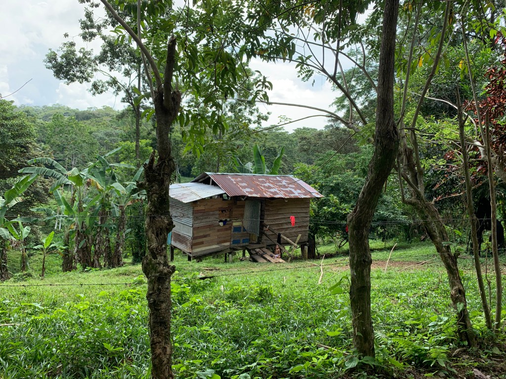 Vårt fina men rustika boende vid Corcovado.Vår stuga med nätväggar vid Corcovado med utsikt över skogen, havet och med