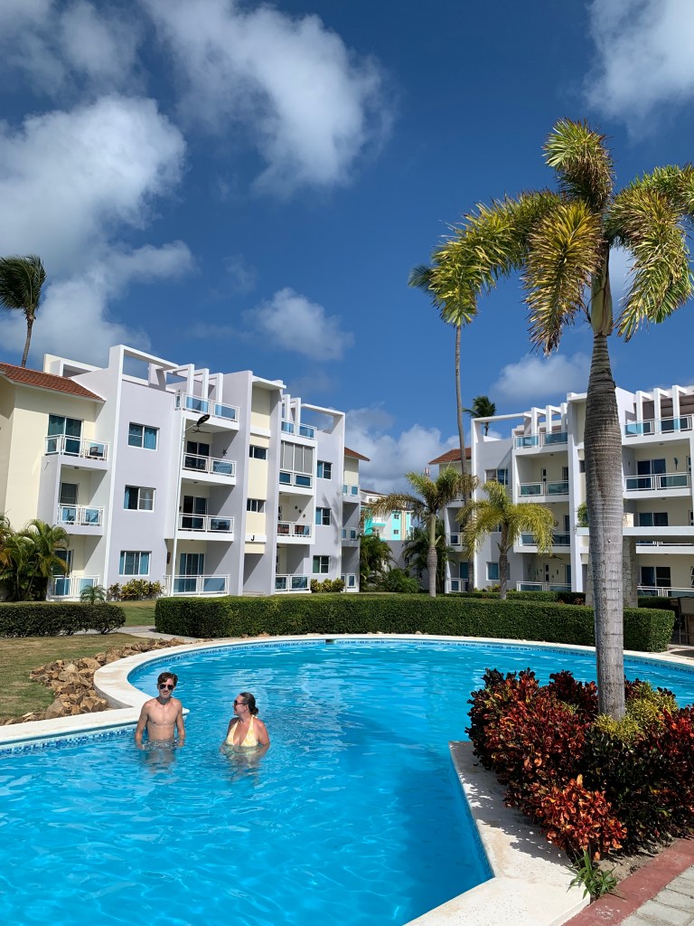 Trots allt ovanstående så gillade vi faktiskt Dominikanska republiken. Vi gillade till exempel vårt första boende. Vi hyrde en lägenhet i ett lägenhetskomplex där pepparkaksbruna pensionärer låg och jäste i solen vid poolen med en varsin öl i handen. Alla kände alla och det var en mycket mysig atmosfär.